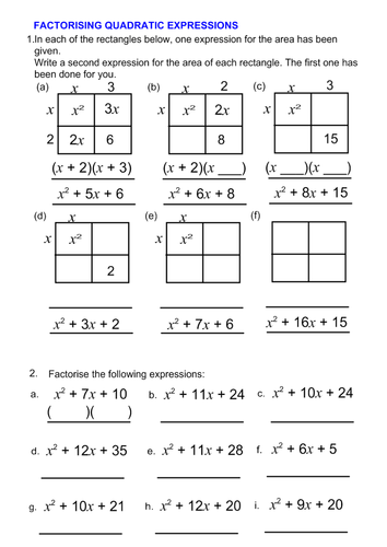 Factorising Quadratics Worksheet A How To Guide With Questions And Answers Teaching Resources