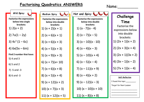 Factorising Quadratics Differentiated Worksheet With Answers Teaching Resources