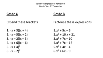 Algebra Factorise Quadratic Expressions Teaching Resources
