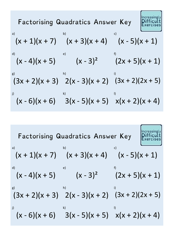 Increasingly Difficult Questions Factorising Quadratics Teaching Resources