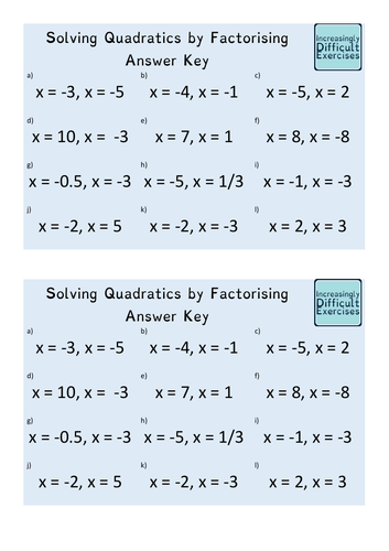 Factorising Quadratics Worksheet Solutions Included Teaching Resources