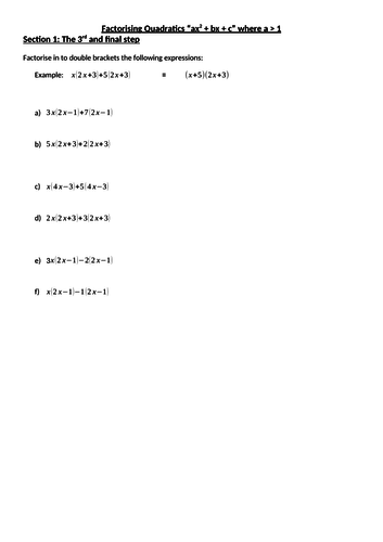 Factorising Quadratics Worksheet A How To Guide With Questions And Answers Teaching Resources